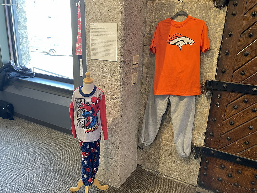 Of the 15 outfits on display as part of this exhibit, 13 were sourced from survivors in our own community.
